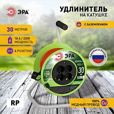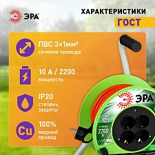 провод ПВС с сечением 3х1 мм2 длиной 30 м. (на пластиковой катушке), розетки с заземлением - 4 шт.
