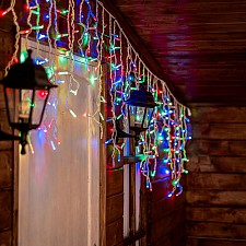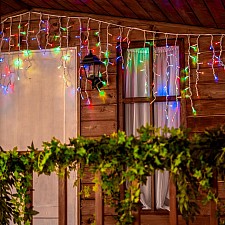 Гирлянда безопасна для использования в уличных условиях. Компактные размеры и продуманная конструкция позволяют легко монтировать гирлянду на различные поверхности. Гирлянду можно соединять в одну линию до 6 штук с помощью коннекторов, которые входят в комплект. Гирлянда с эффектом мерцания, каждый 5-й светодиод мигает остальные светят статически.