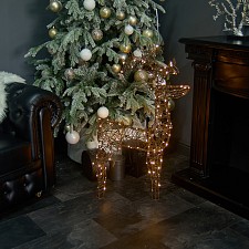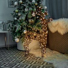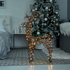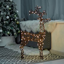 Каркасная фигура впечатляющих размеров 60×98 см с 160 светодиодами теплого белого света создает эффект парящего в воздухе силуэта. Благородный олень с мощными рогами и изящными линиями станет роскошным украшением сада, парадного входа или просторной гостиной. Коричневый цвет корпуса гармонично сливается с природным окружением, чтобы вечером вы наслаждались только чистым сиянием праздничного освещения.